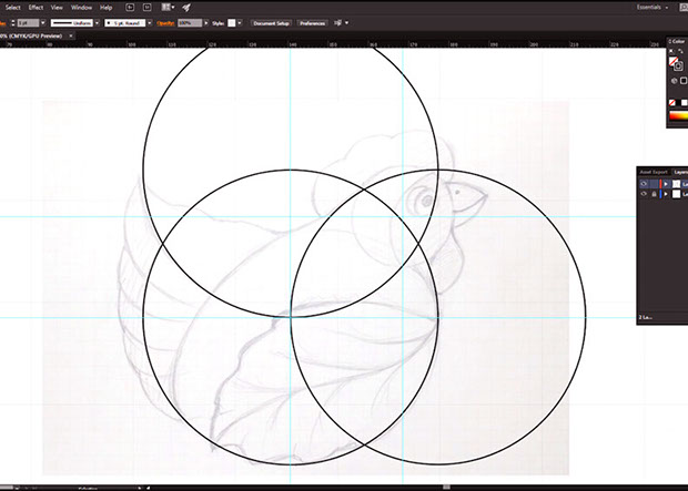 Draw the eye of chicken using a compass, and the pupil draw by hand.