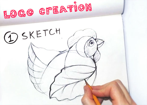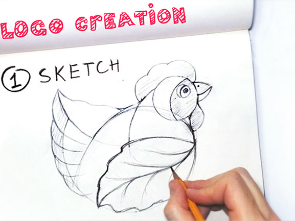 Chicken is a very domesticated animal. It is a symbol of comfort, home, family and fertility. The egg symbolizes the creation of the World. Even there is such a rhetorical question: "What was the first chicken or egg?" It is for these reasons that I decided to create a logo with chicken from ellipses and flowing lines.