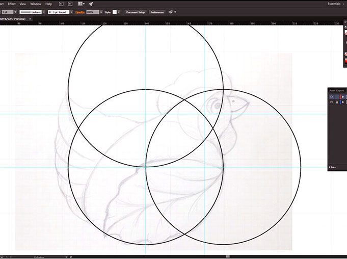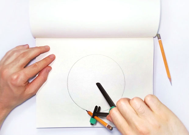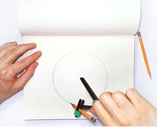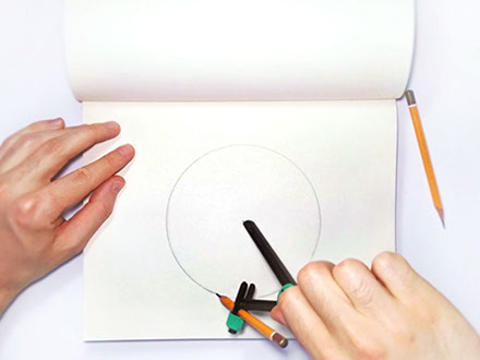 Draw the eye of chicken using a compass, and the pupil draw by hand.